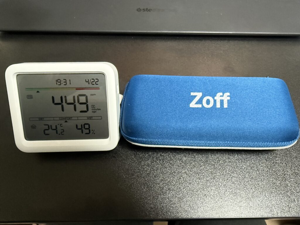二酸化炭素濃度が上がると集中力が落ちたり、息苦しさを感じたりするとされているので、リアルタイムで数値が見られるのは助かります。